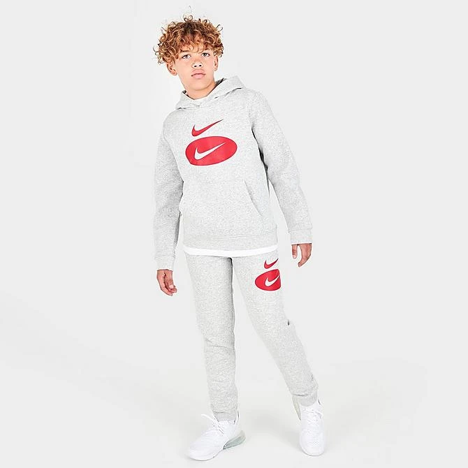 Double the swooshes, double the fun. Delivering the comfort they need with the style they demand, the Boys’ Nike Sportswear Swoosh Pack Pullover Hoodie is a chilly day essential.