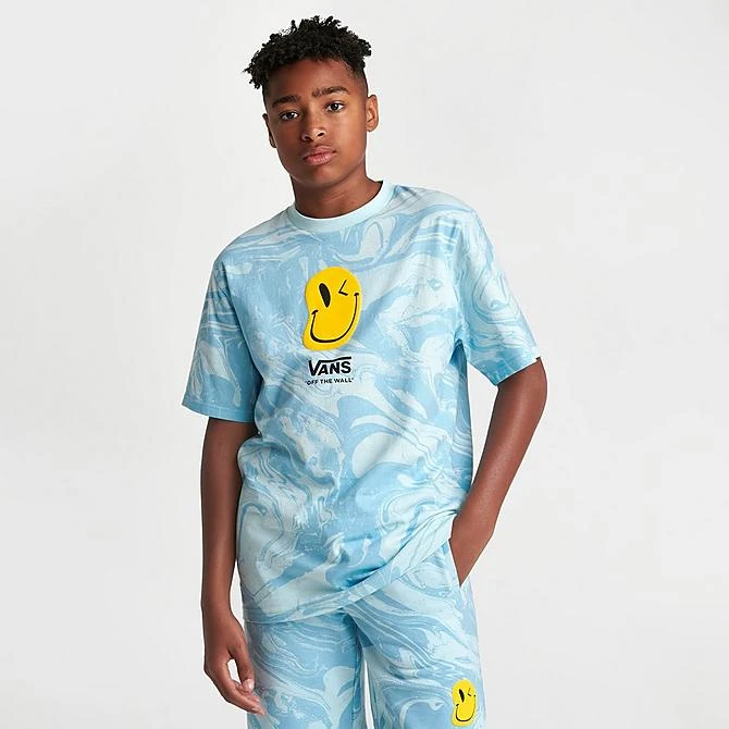 Bring some positive vibes with you throughout your day when you wear the Kids’ Vans Marble Smile T-Shirt. This classic crewneck has a cool marbled design and features a fun smiley face graphic.