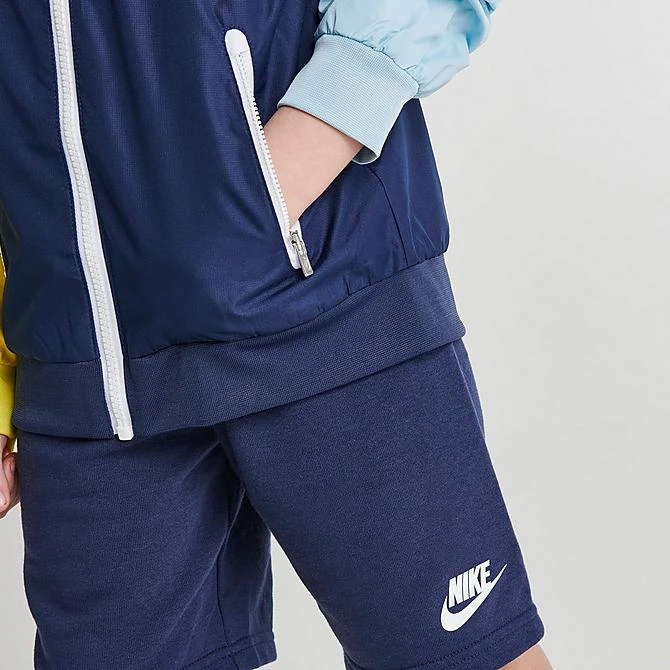 Make dressing your little one for warm rainy days a breeze with the Little Kids’ Nike Active Joy Windrunner Jacket and Shorts Set. This two-piece set comes with a water-resistant jacket and a pair of comfy French terry shorts that will keep them feeling comfortable no matter what the weather forecast.